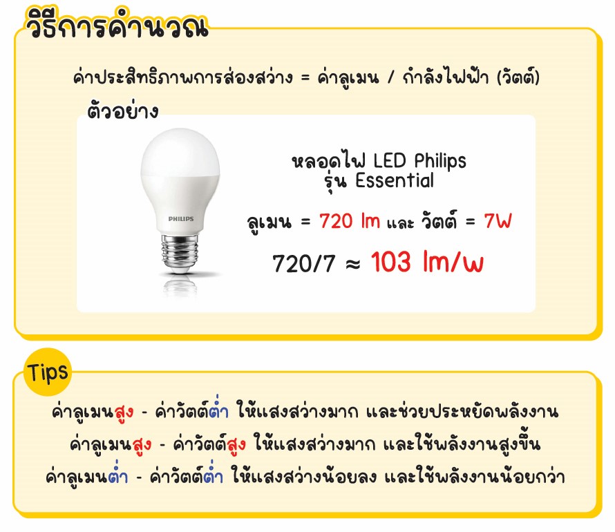 ค่าลูเมน/วัตต์ ของหลอดไฟ คืออะไร?